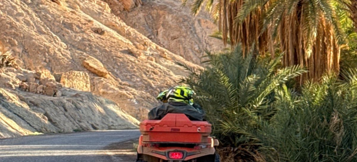Raid Quad Maroc organise le départ tôt le matin ,vers la ville de Agdz, en passant par des montagnes escarpées de roches noires et grises à partir de laquelle nous pouvons désormais contempler la vallée du Draa dans la quelle nous allons peu à peu pénétrer pour y découvrir leur majestueux palmeraie.